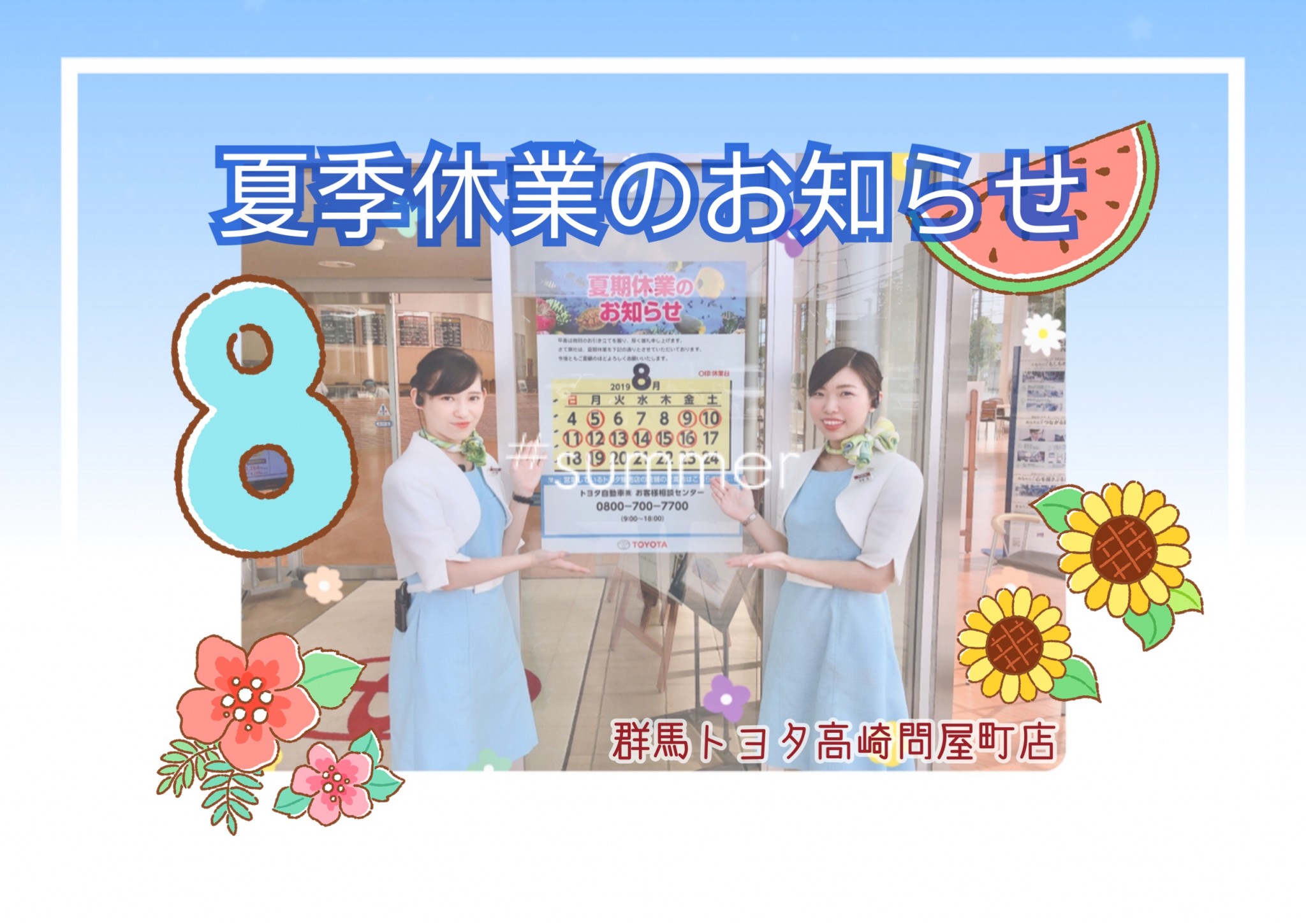 群馬トヨタ夏季休業のお知らせ 【 高崎問屋町店 】