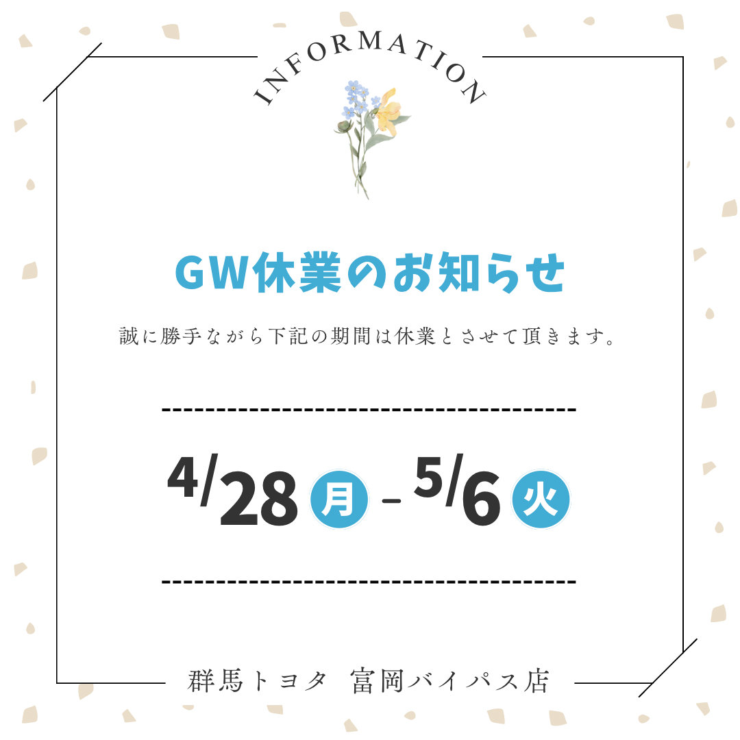 ゴールデンウィーク休業のお知らせ【群馬トヨタ富岡バイパス店】