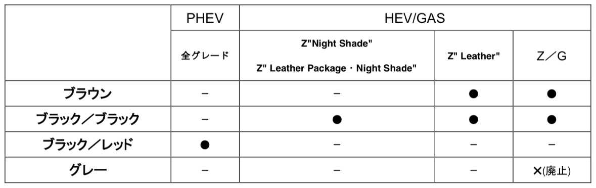 Z"Leather"/"Night Shade"(HEV/GAS)に追加