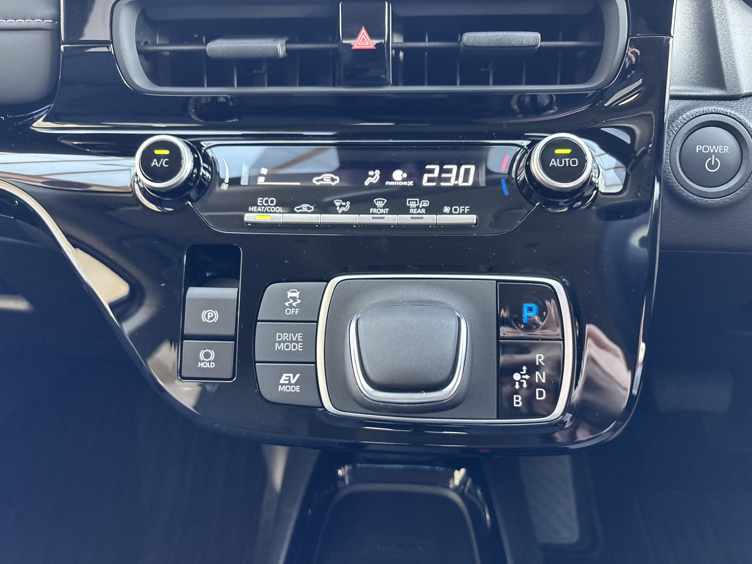 シフト横のスイッチで操作できる電動パーキングブレーキ。
