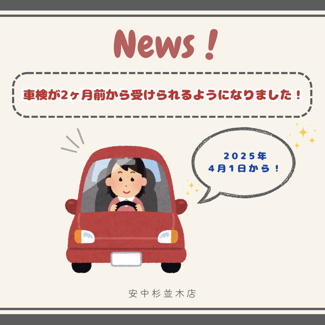 2025年4月1日からは2ヶ月前から車検を受けることが可能になりました✊