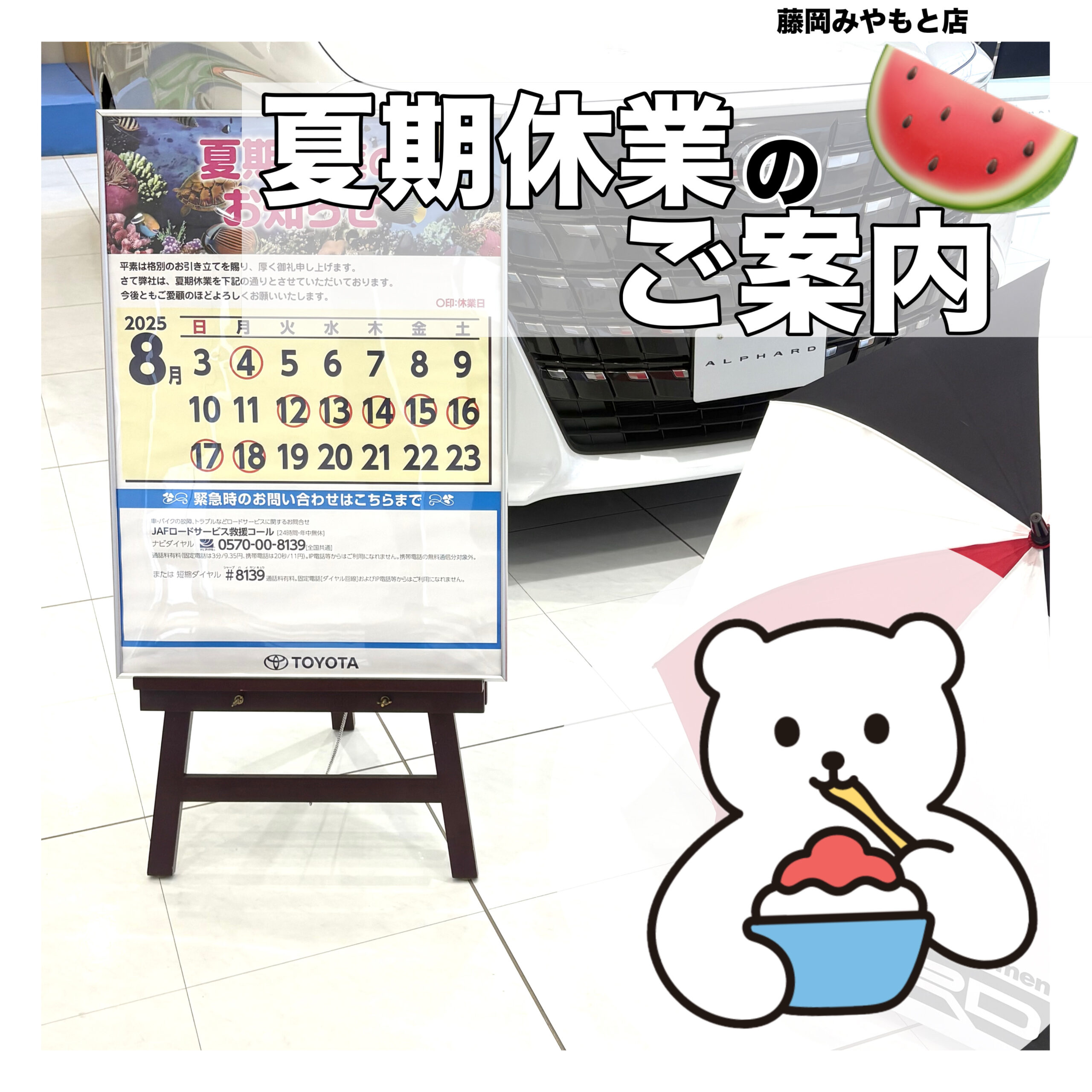 【ご確認ください!】夏季休業期間のご案内🎐【藤岡みやもと店】