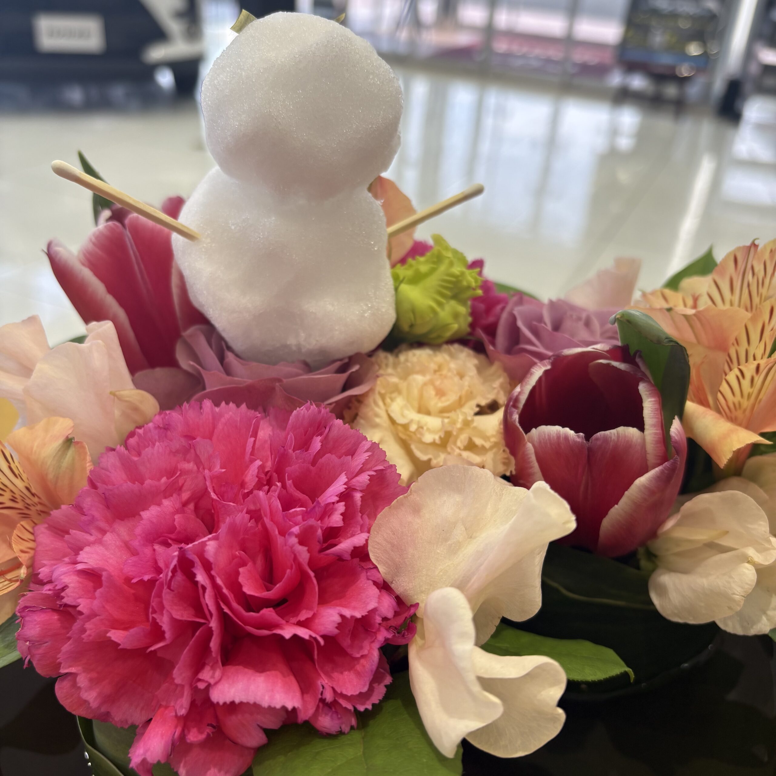 スタッフ作の雪だるまが乗っていました⛄❄