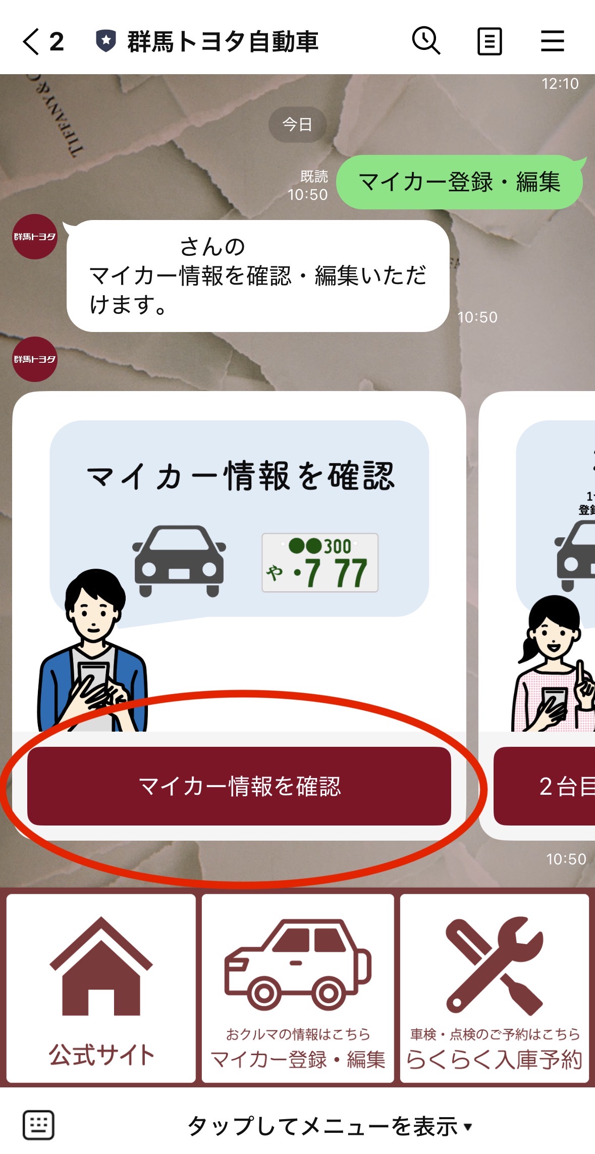 他にもラインマイカー登録をすると・・・