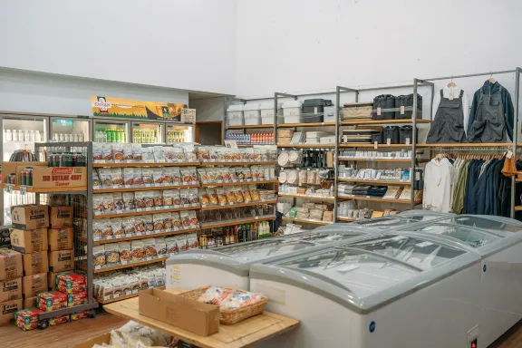 センターハウスには、無印良品の商品をはじめ、アウトドア用品や食料品などキャンプに必要なものが揃っておりキャンプ初心者の方も安心の品揃えです!また、レンタル用品ご利用の受付も行っております。