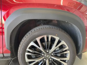 オーバーフェンダーがブラックの未塗装樹脂になっていることで