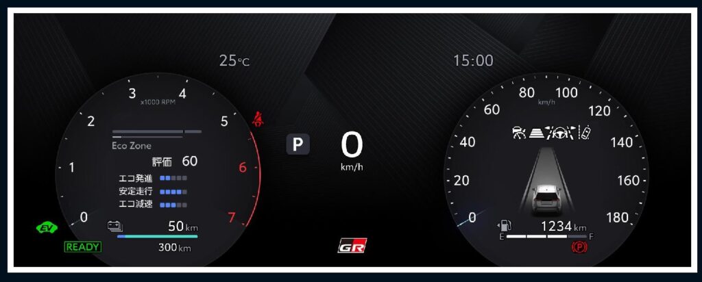✔ 専用メーターディスプレイ(GRロゴ付)+専用オープニング画面