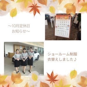 10月定休日&ショールームスタッフ衣替え