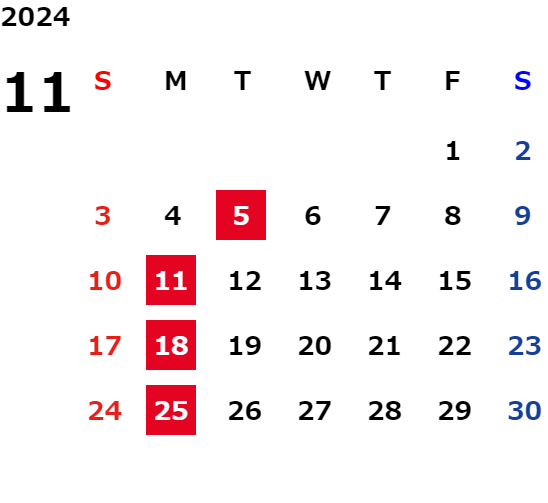 11月定休日のご案内