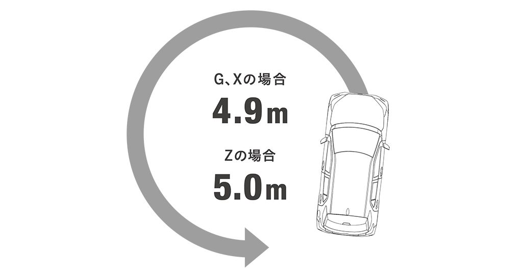 最小回転半径は以下のようになっており