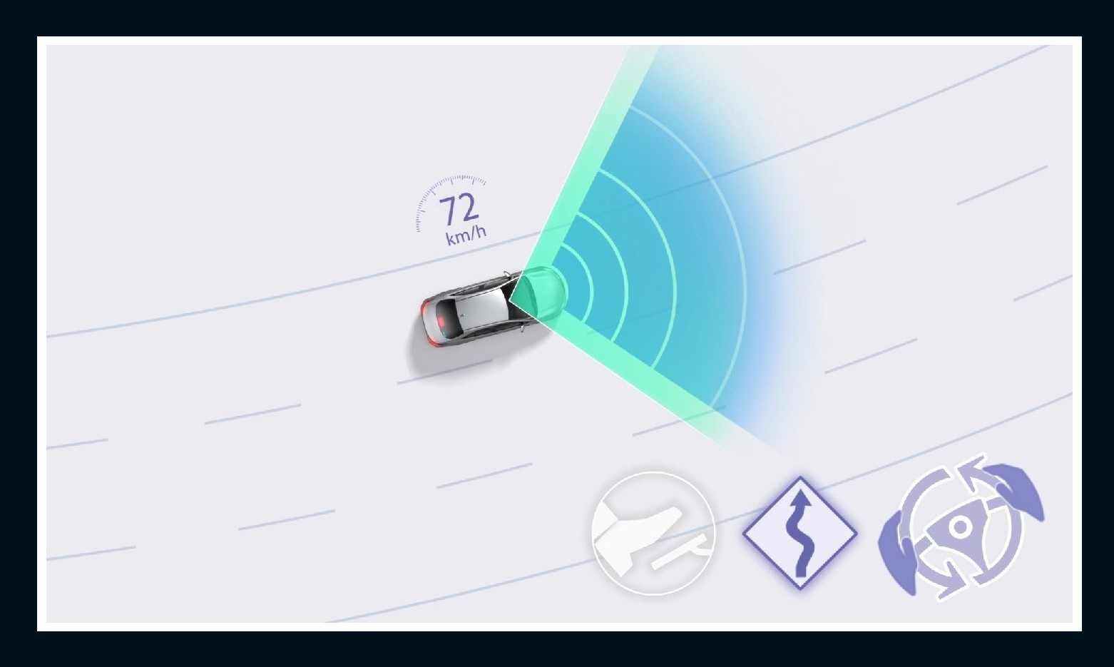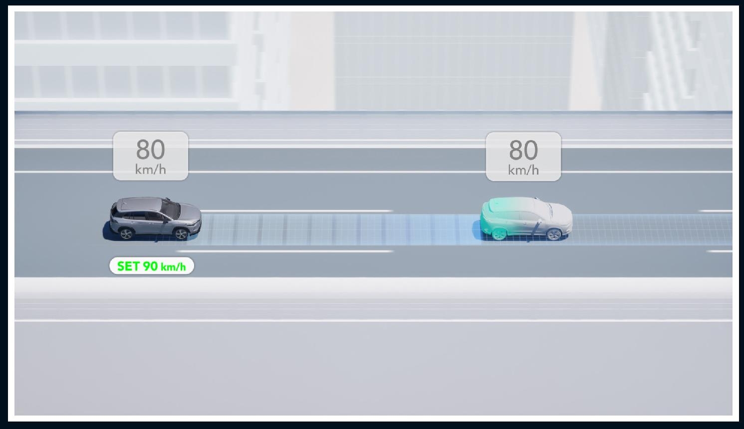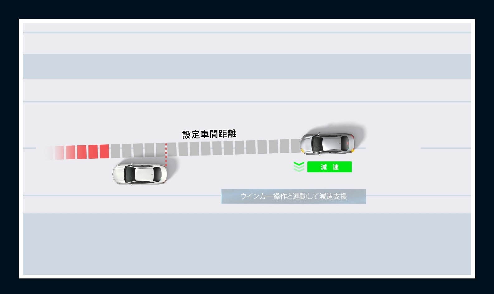 予備減速を実施し、スムーズな追い越しや車線変更を行います。