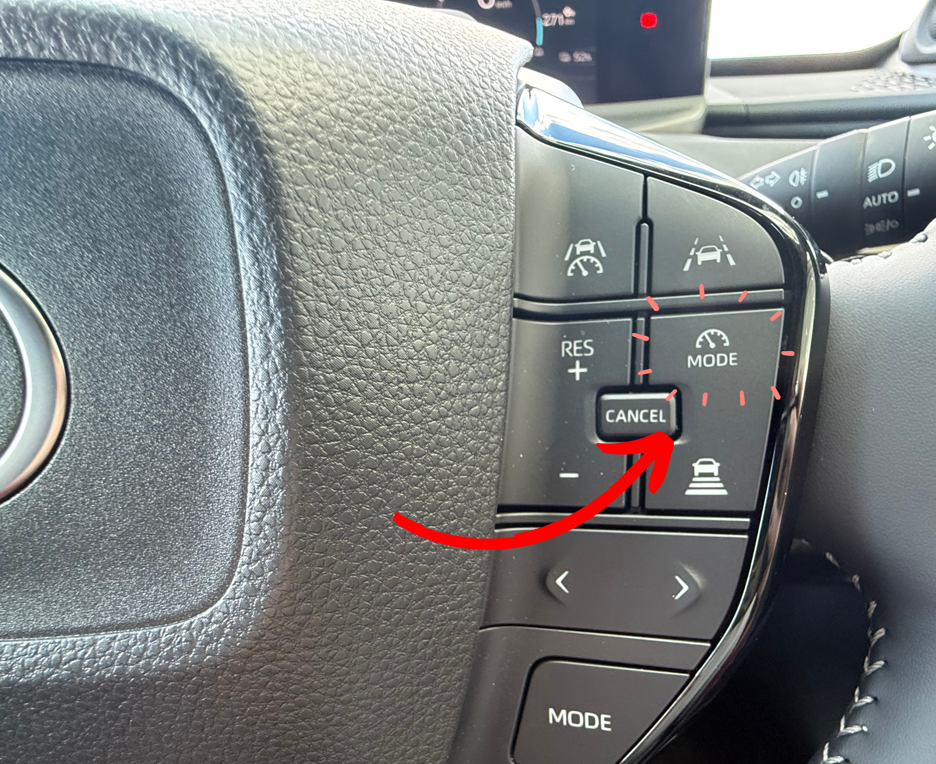 ハンドルの走行支援モード選択スイッチを押して