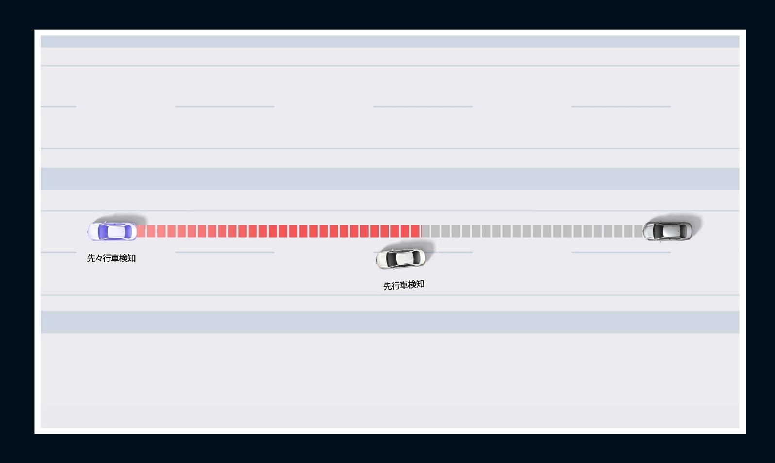 前方認識範囲を先々行車まで拡大。