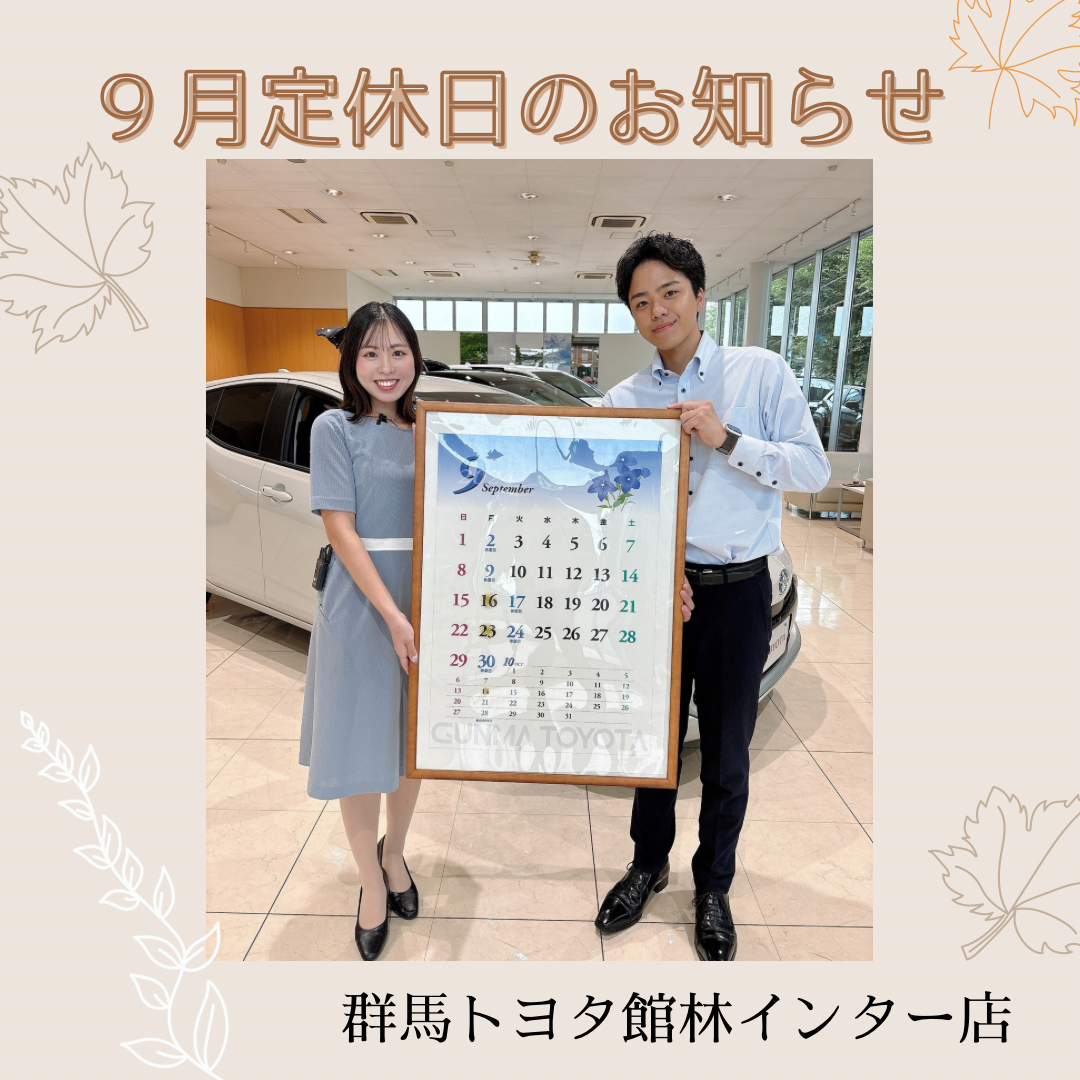 9月定休日のお知らせ【群馬トヨタ館林インター店】