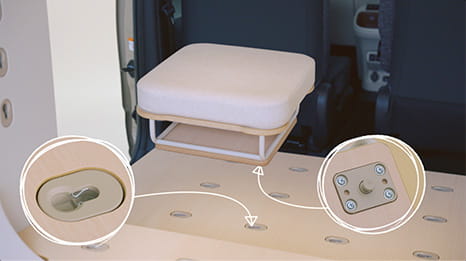 専用フロアや専用サイドトリムに、ベースモジュールやクッションモジュールを
