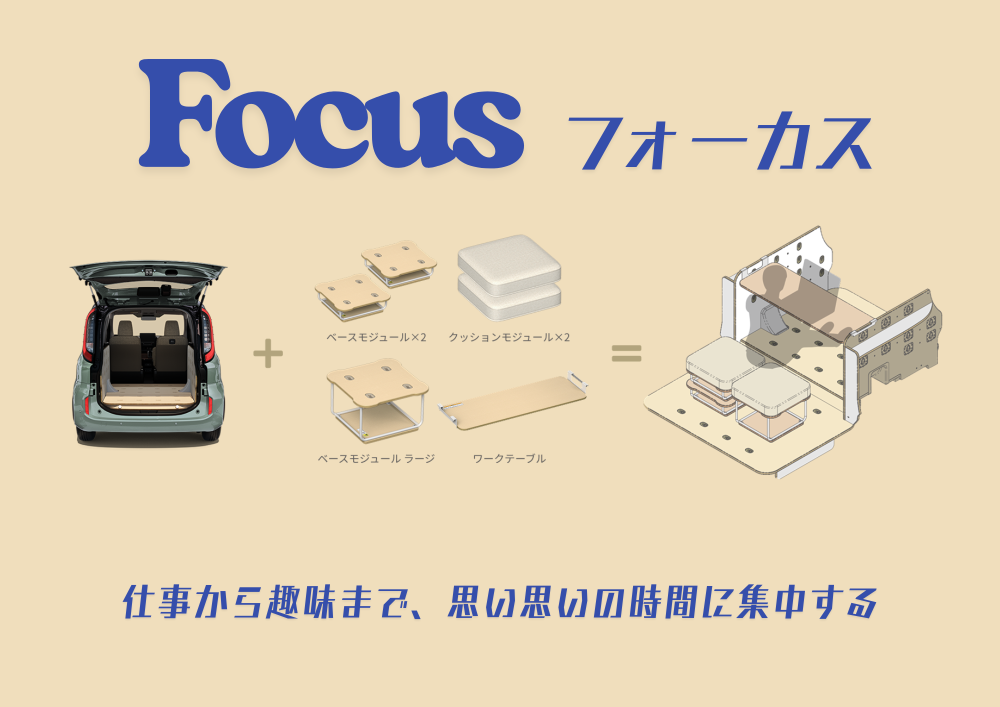 Zグレード(ハイブリッド)をベースに、着脱式の家具モジュールを搭載し、