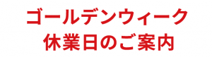 ゴールデンウィーク休業日のご案内です。