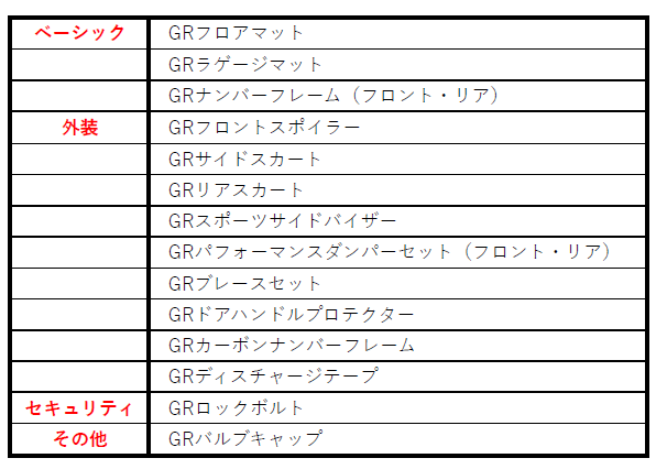 【 GRアクセサリー 一覧 】