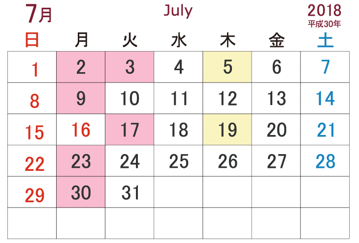 7月 ☞ 2日(月)3日(火)、9日(月)