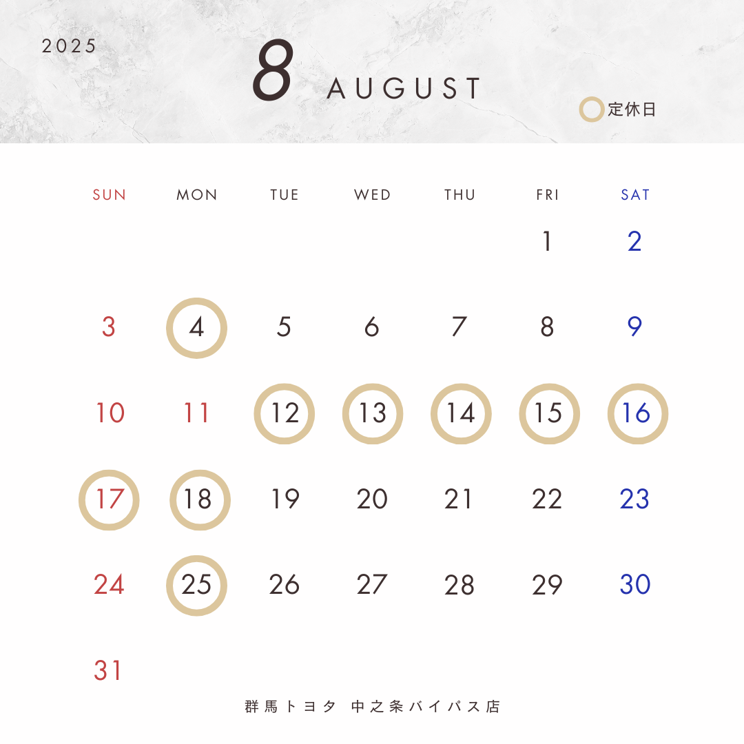 【 8月定休日 】