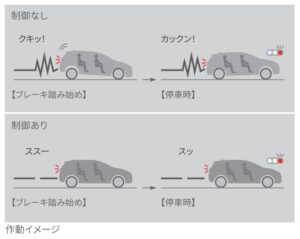 停車時直後の車両の揺れ動きを抑え乗員の姿勢変化を低減するよう補助
