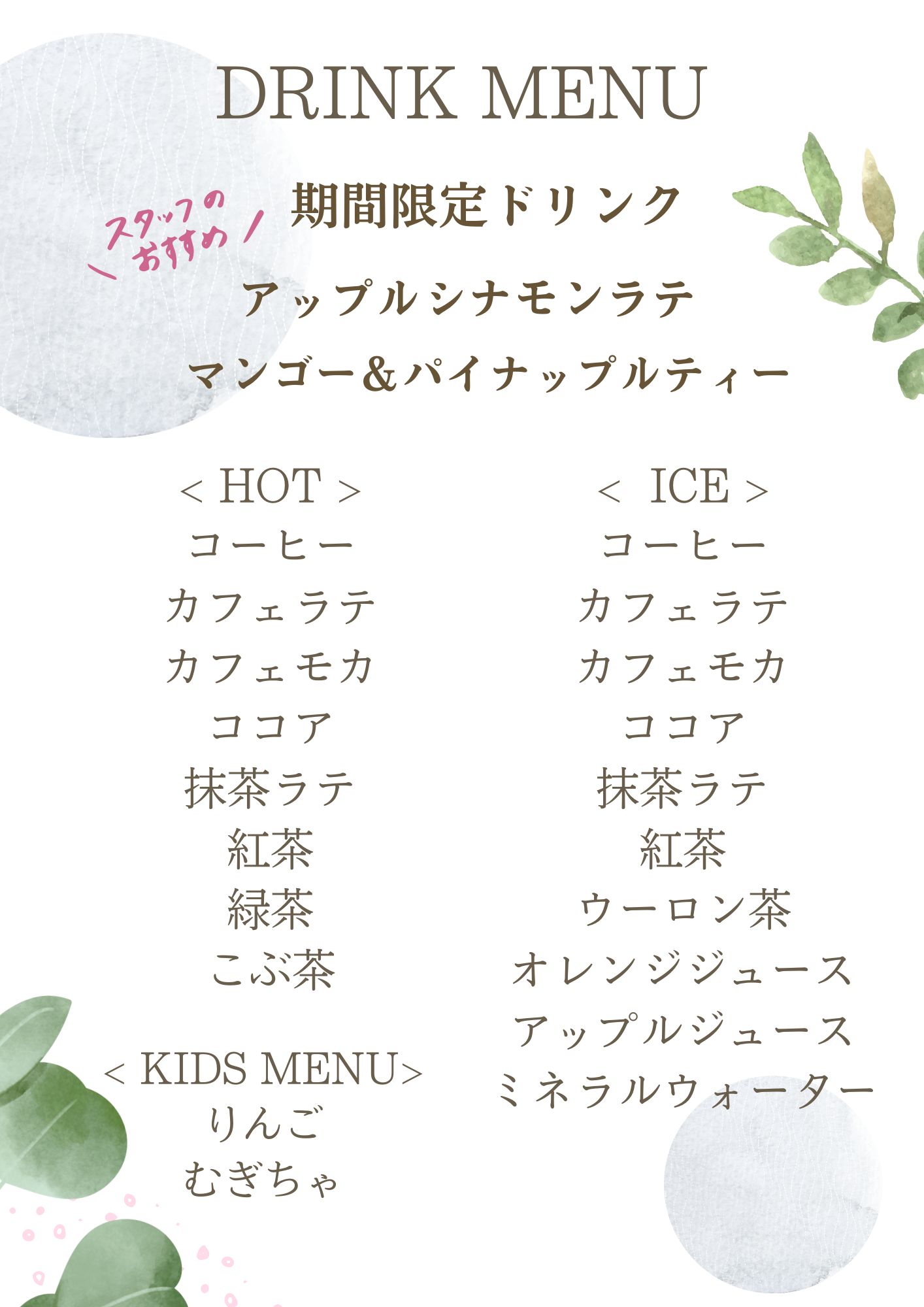 本日は、期間限定ドリンクをご案内いたしました。