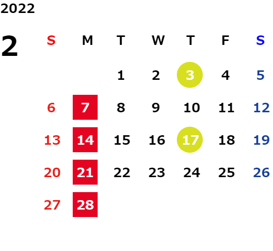 🎎《2月の営業日》🎎