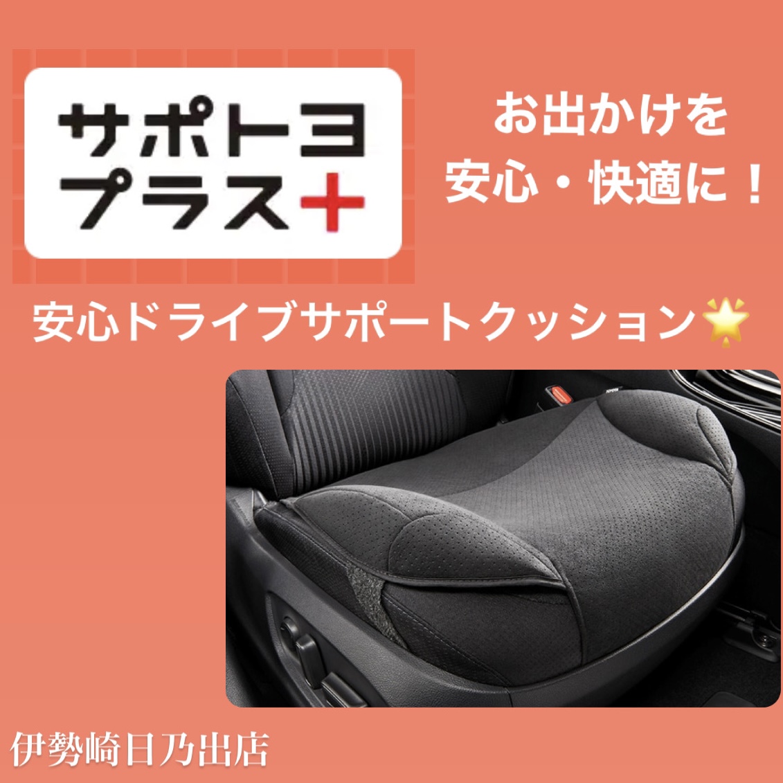 ドライブを安心・快適に!「安心ドライブサポートクッション」~伊勢崎日乃出店~