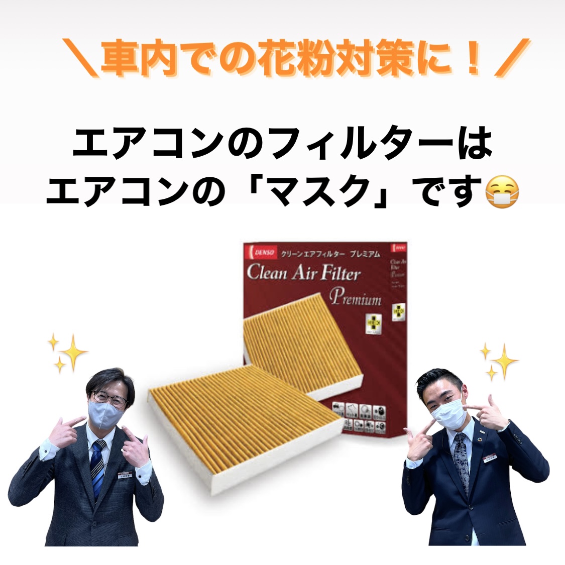 【車内での花粉対策に!】エアコンにもいい性能の「マスク」をつけましょう!