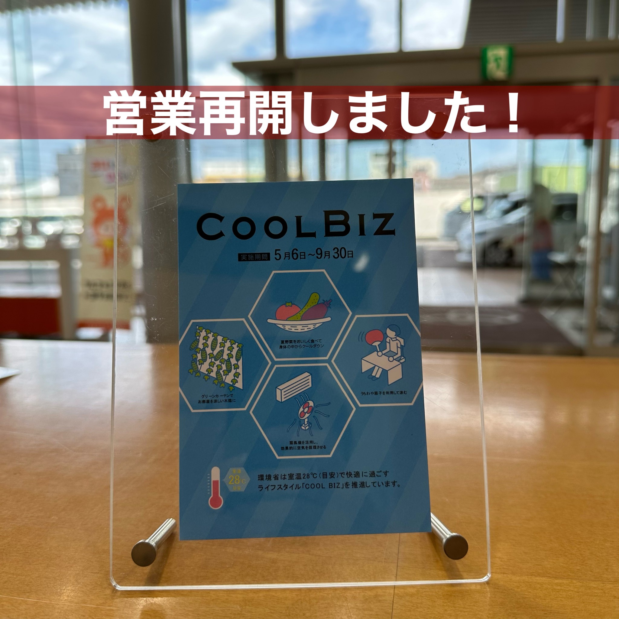 営業再開しました!クールビズのお知らせ