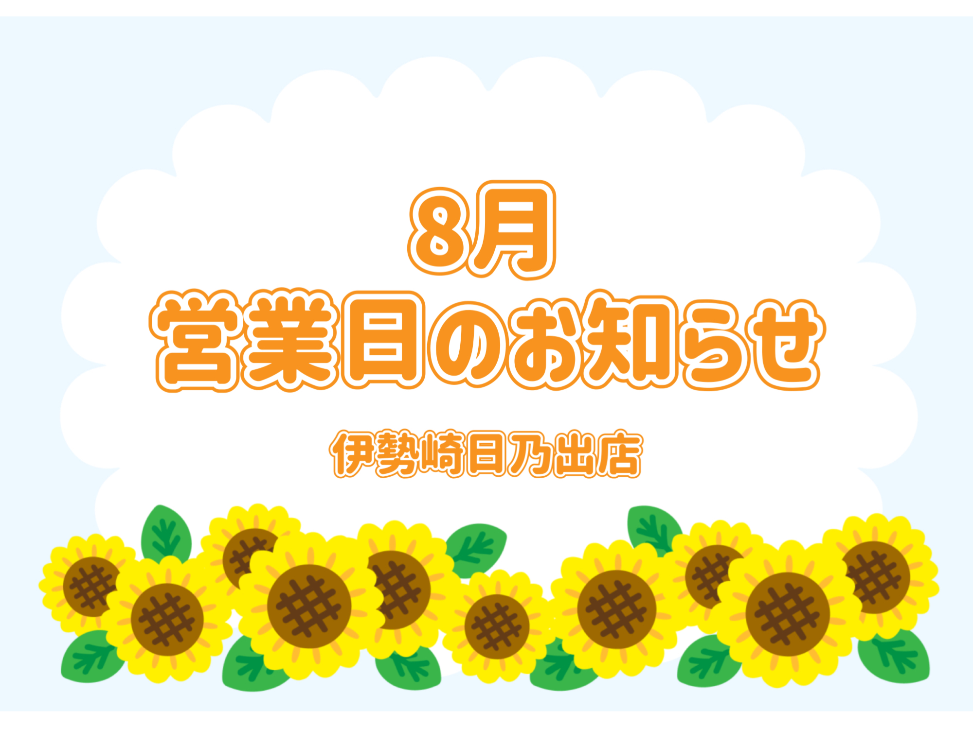 8月の営業日のお知らせ【群馬トヨタ伊勢崎日乃出店】