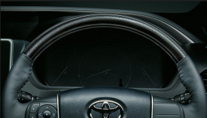 ◆本革巻きスポークステアリングホイール(ブラックサイバーカーボン調加飾付+ダークシルバー塗装)