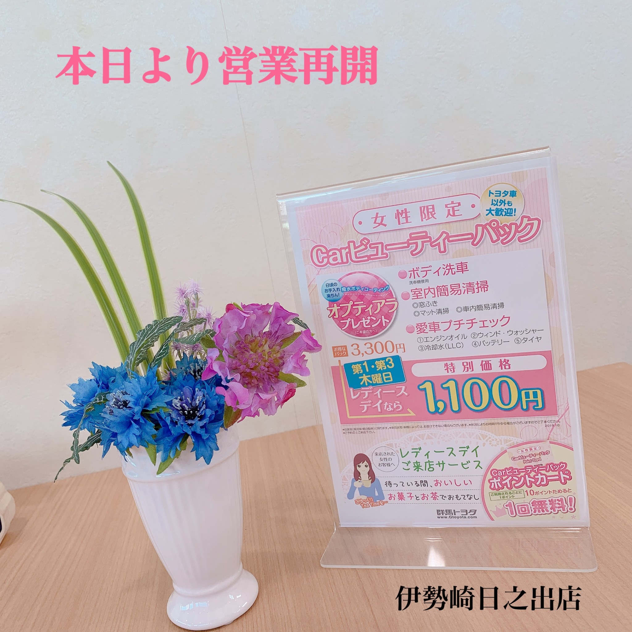 【営業再開とレディースデーのお知らせ】です!