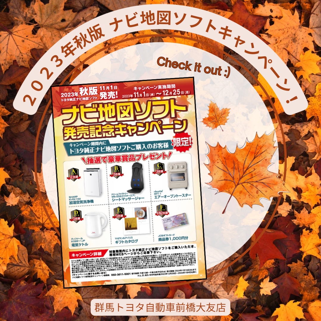 【2023年最新秋版ナビ地図ソフト】11月1日発売、トヨタ純正ナビ地図ソフトキャンペーン!