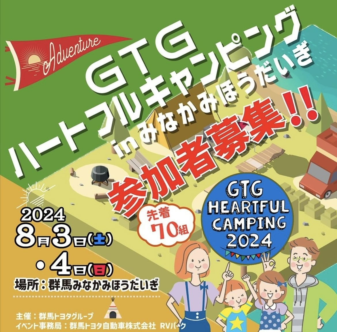 先着70組募集!GTGハートフルキャンピング2024のご案内【群馬トヨタ前橋大友店】