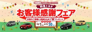 2024年10月より開催!群馬トヨタお客様感謝フェア “日頃のご愛顧に感謝を込めてWプレゼント” のご案内【群馬トヨタ前橋大友店】