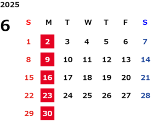 さて今回は6月の定休日のご案内です📅