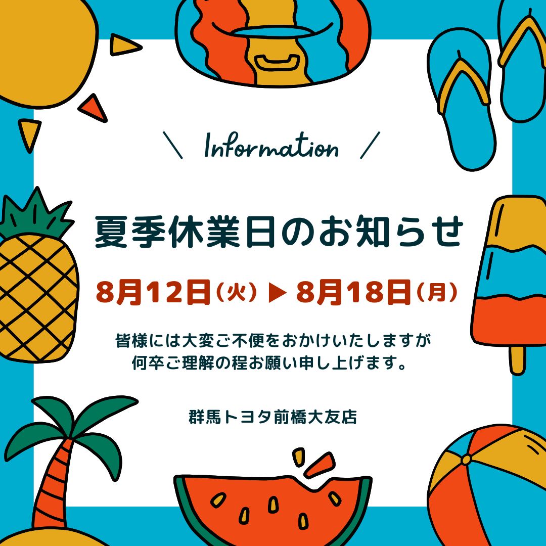 夏季休業のお知らせ【群馬トヨタ前橋大友店】