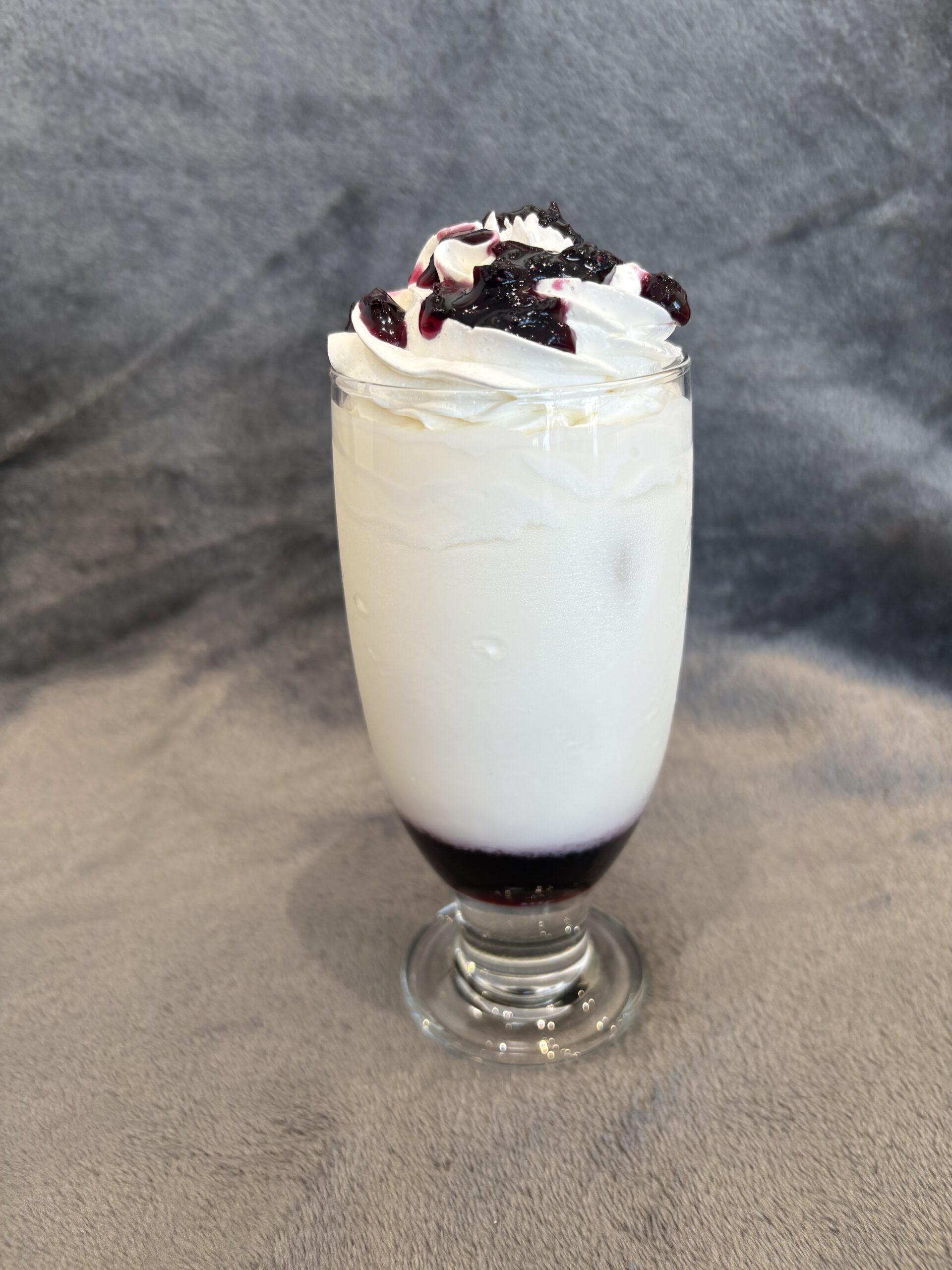 ホイップクリームとブルーベリーソースをトッピング!
