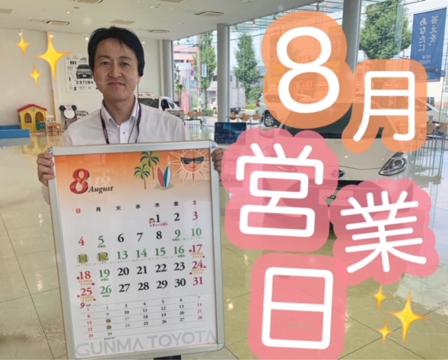 さて本日は、8月の営業日のご案内です。