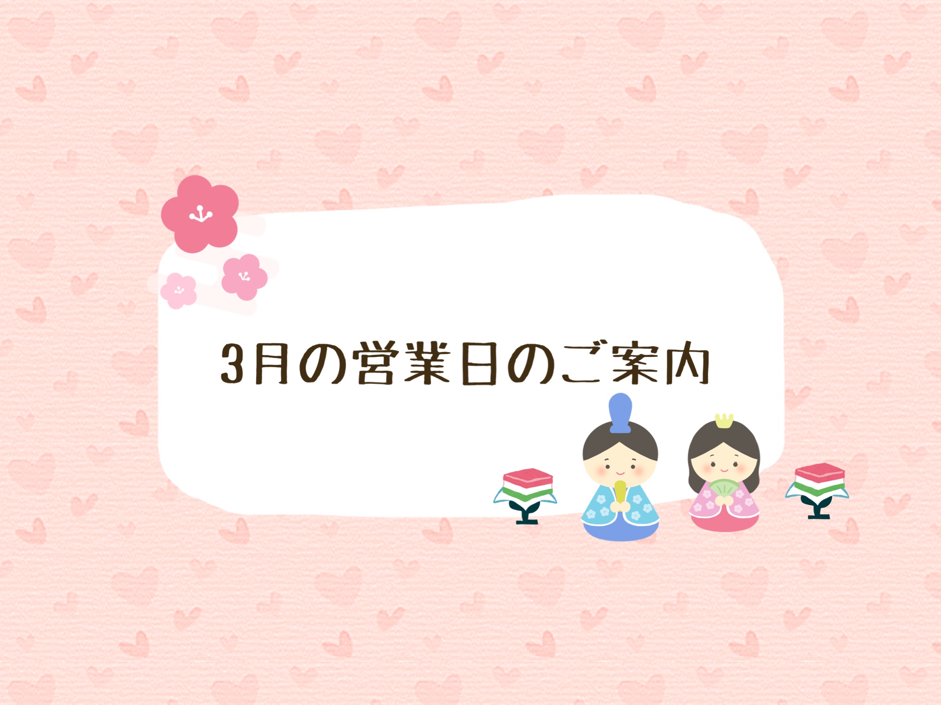 さて、本日は3月の営業日のご案内です!