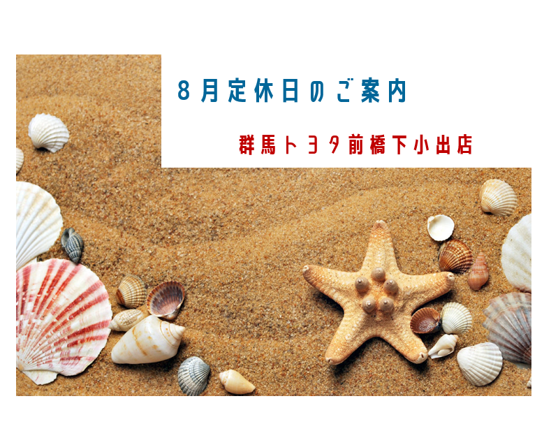 8月定休日のご案内【群馬トヨタ前橋下小出店】