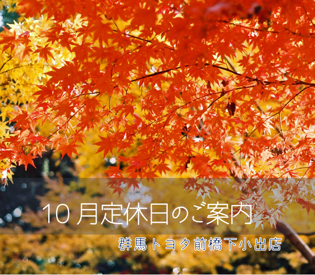 10月定休日のご案内【群馬トヨタ前橋下小出店】