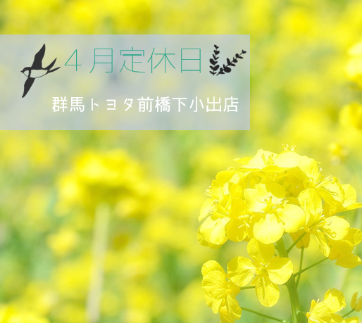 4月定休日のご案内【群馬トヨタ前橋下小出店】