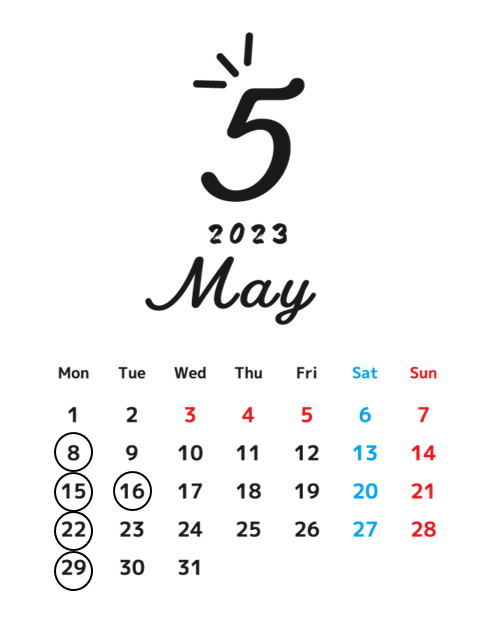 5月の定休日のご案内です!