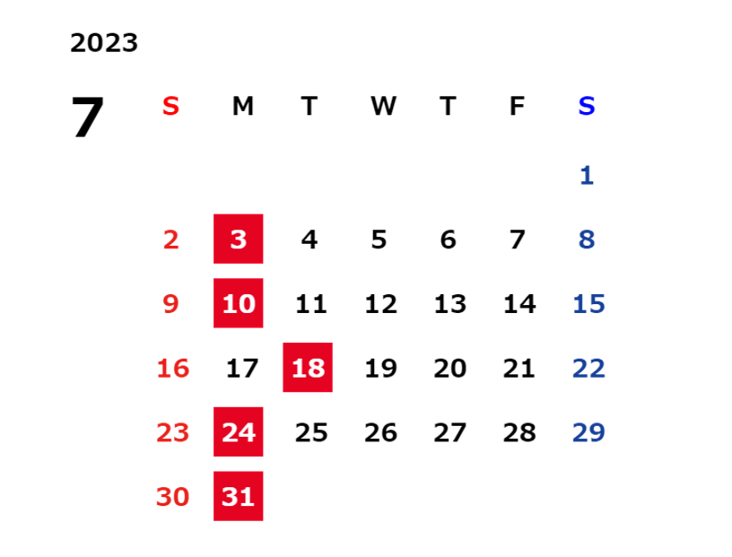 さて、7月定休日のご案内です📃