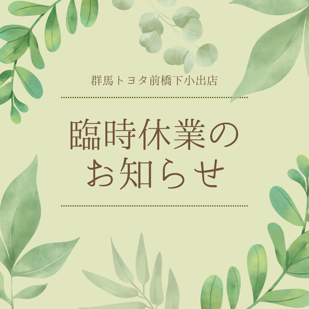 5月27日(火)臨時休業のお知らせ🚘【群馬トヨタ前橋下小出店】