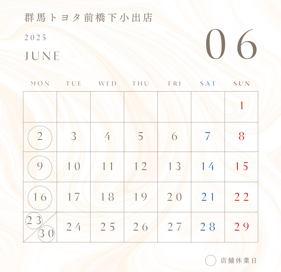 6月定休日ご案内【群馬トヨタ前橋下小出店】