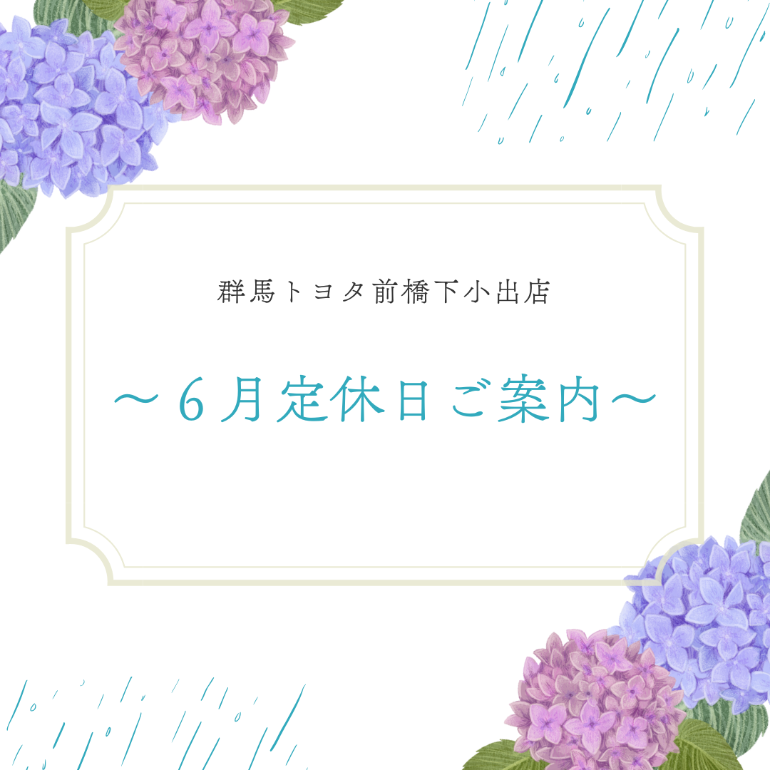 6月定休日ご案内【群馬トヨタ前橋下小出店】