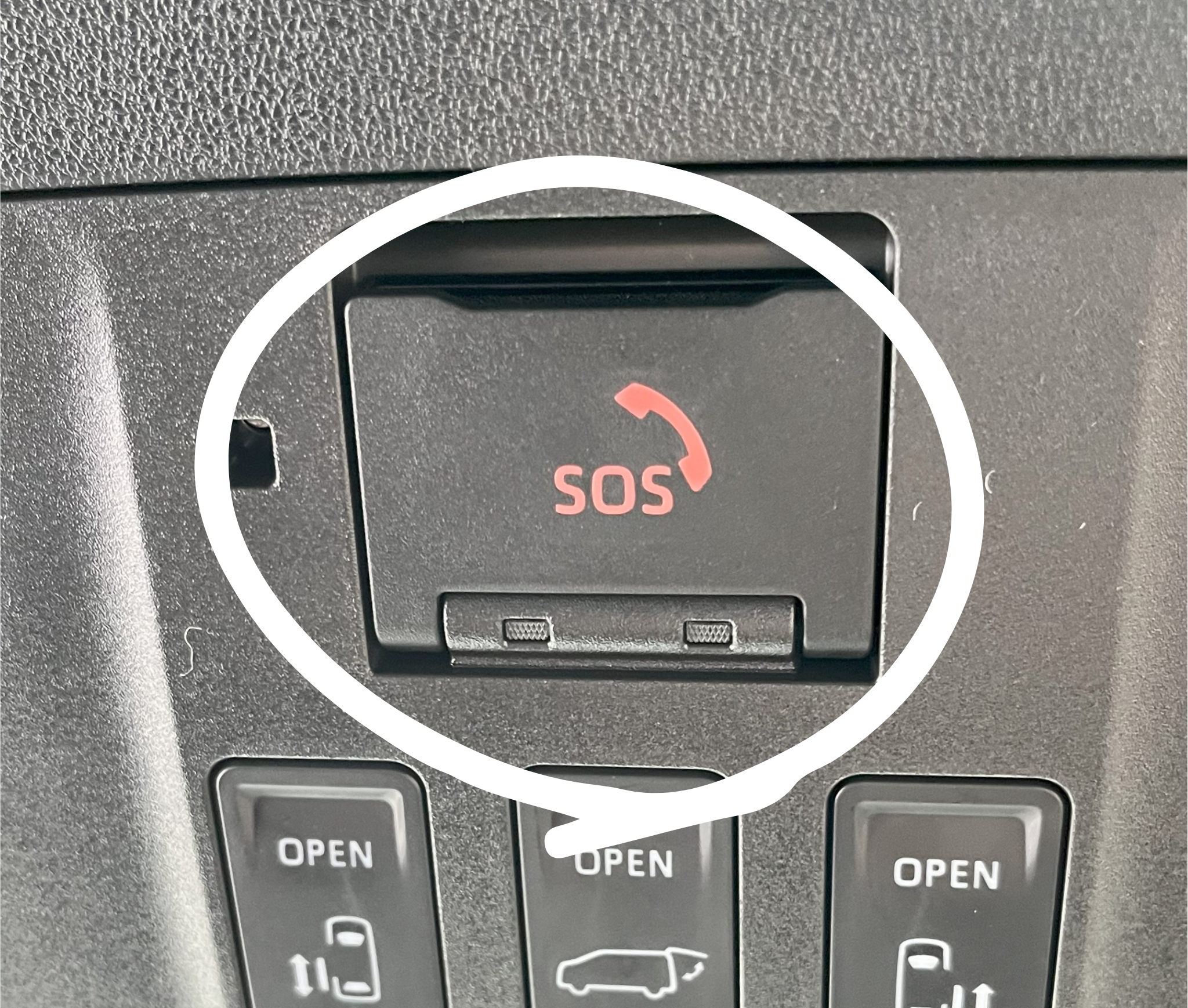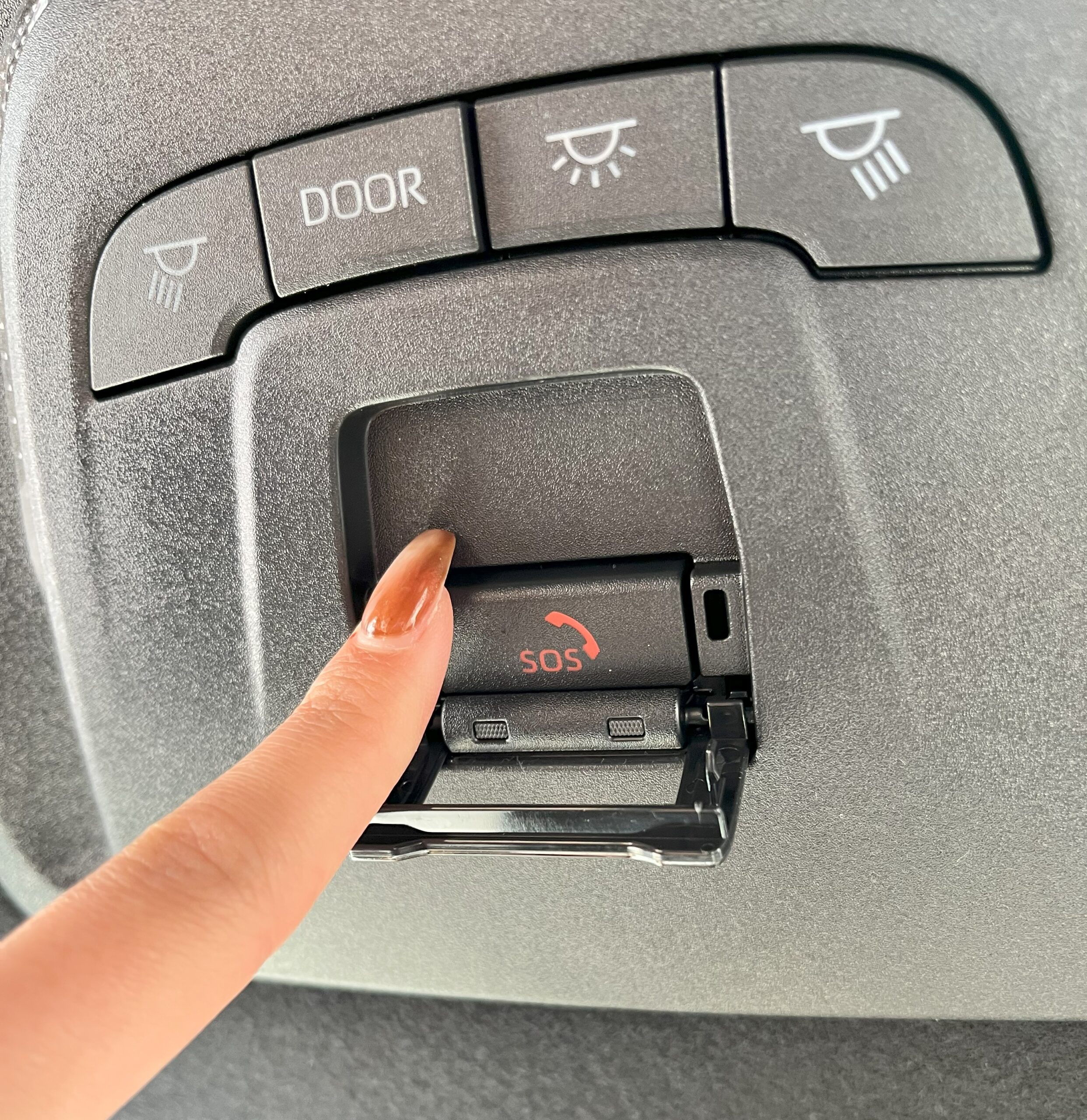 運転席天井にあるヘルプネットボタンを10秒以上長押しします